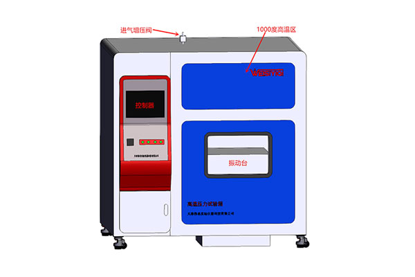 1、高温振动耐压试验箱模拟排气管道在汽车上的真实状态,可实现1200℃发动机的高温排气,振动可实现XYZ六维度的汽车真实模拟测试汽车真实的运动状态。
